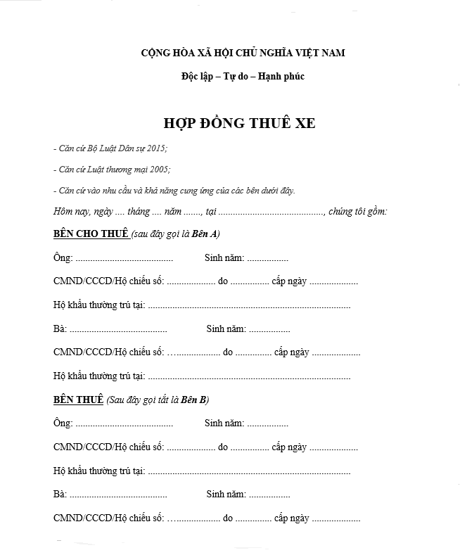 - Doanh nghiệp thuê xe phục vụ sản xuất, kinh doanh ngắn hạn hoặc du lịch.
