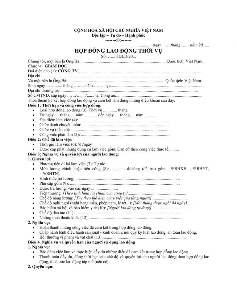 Mẫu hợp đồng thời vụ rất hữu ích trong thực tiễn hoạt động sản xuất kinh doanh, do đó được nhiều cá nhân, tổ chức quan tâm. Nội dung và hình thức hợp đồng có nhiều điểm cần lưu ý.