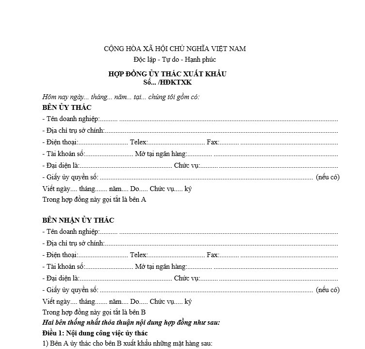 3.2 Mẫu hợp đồng ủy thác hàng hóa tham khảo