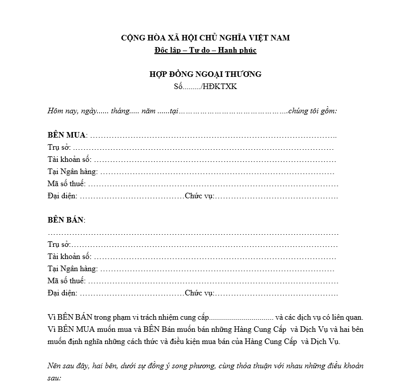 =>> Tải mẫu hợp đồng ngoại thương xuất khẩu TẠI ĐÂY.