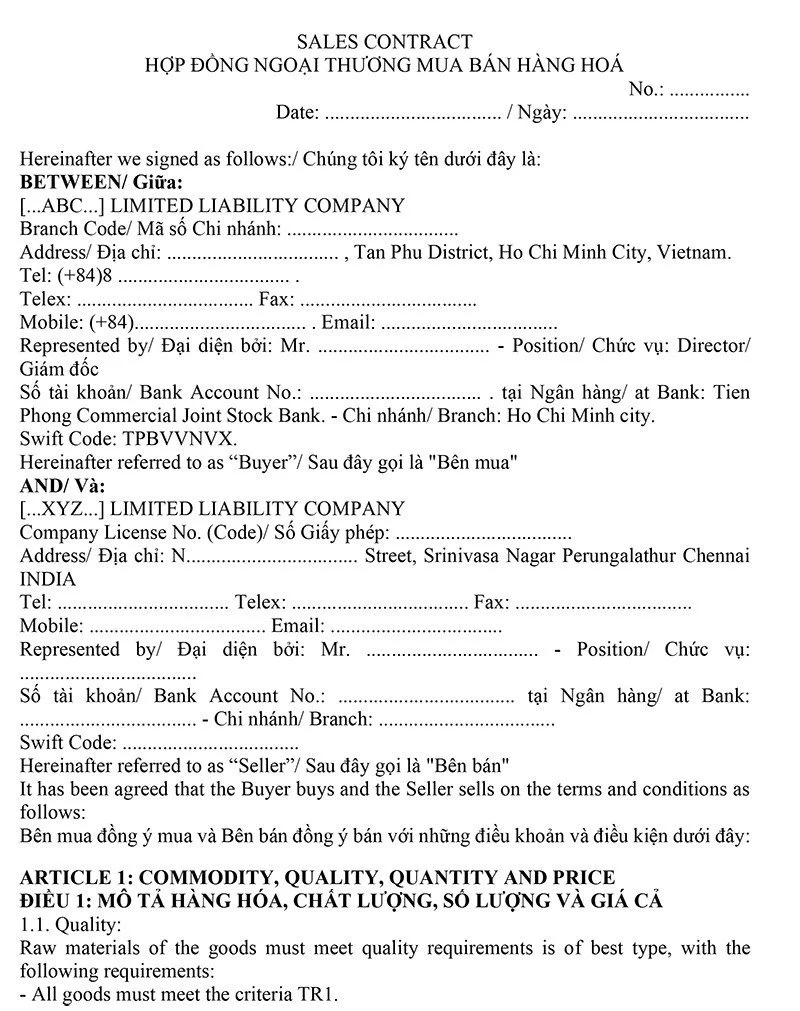 3. Mẫu hợp đồng ngoại thương xuất khẩu